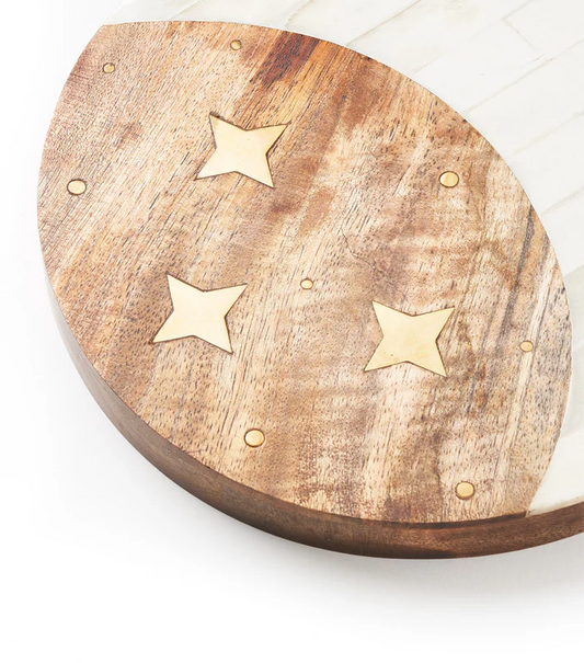 Matr Boomie Fair Trade: Nakshatra Moon Stars Cheese Board - Bone, Wood, Brass