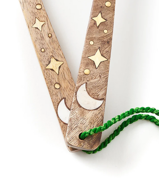 Matr Boomie Fair Trade: Nakshatra Moon Stars Serving Utensils Set - Carved Wood, Bone