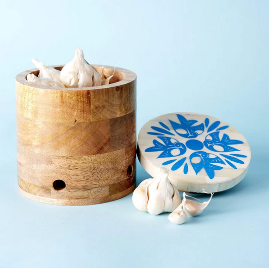 Matr Boomie Fair Trade: Ankura Blue Dove Garlic Keeper - Handmade, Mango Wood, Bone